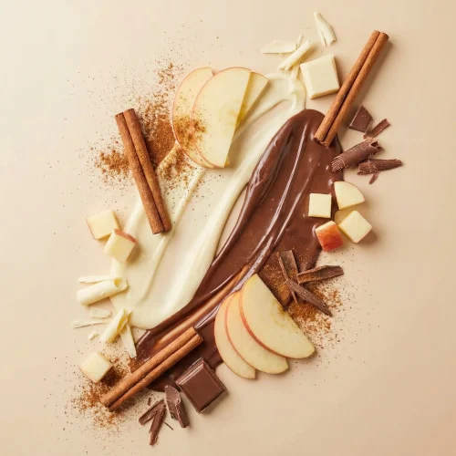 Ripieno: mela, cannella e cioccolato caramellato. Un gusto avvolgente, speziato, che scalda il cuore.