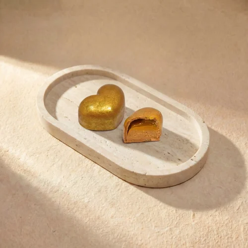Il momento in cui due identità si incontrano, si riconoscono e si completano. Questa pralina è avvolta in un’aura dorata — come la luce che nell’opera di Klimt fonde i due corpi in un unico gesto eterno.